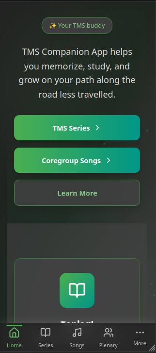 A cross-platform tool to help you stay consistent in your TMS memorization, offering series, songs, plenary guides, and more.